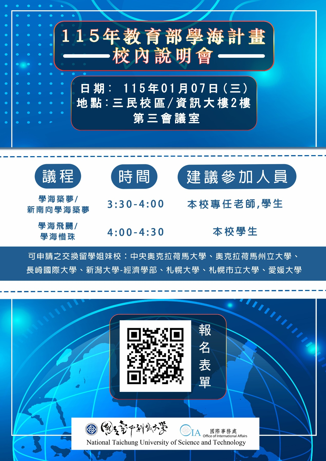 國際事務處將於115年1月7日(三) 下午3:30~4:30,